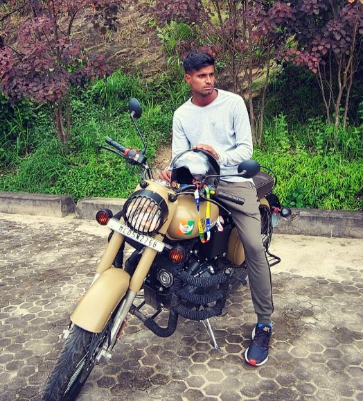 Akash Kumar Choudhary posing with his Royal Enfield bullet bike