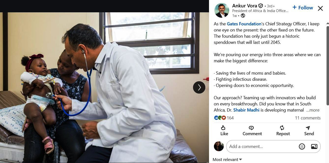 - In February 2026, he represented the Gates Foundation at the India AI Impact Summit in New Delhi.