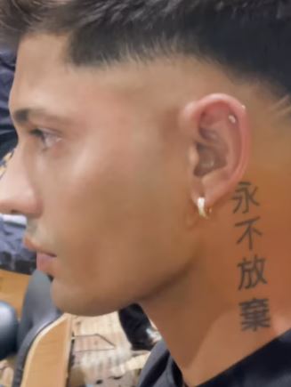 | Tattoo(s) | • On the neck • On both arms ![]() |