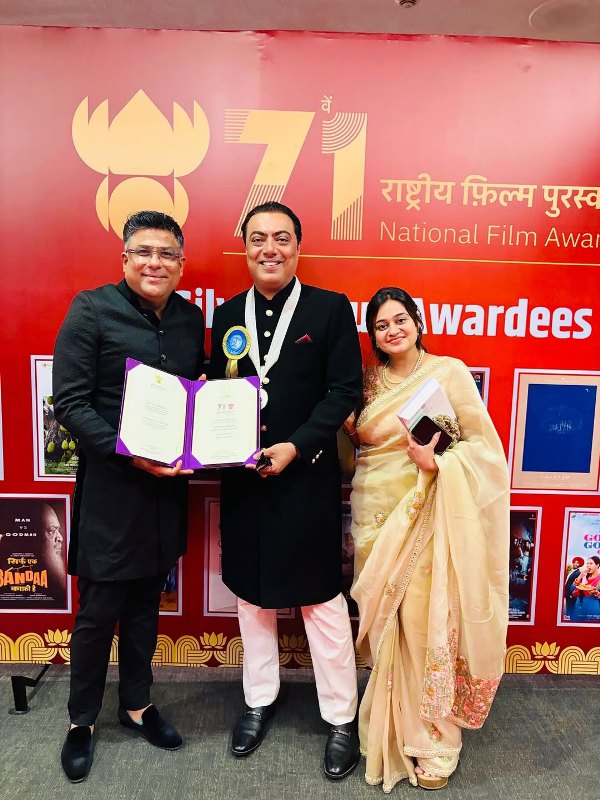 Deepak Kingrani, after receiving the Silver Lotus Award (Rajat Kamal) for Best Screenplay (Dialogues) at the 71st National Award Films