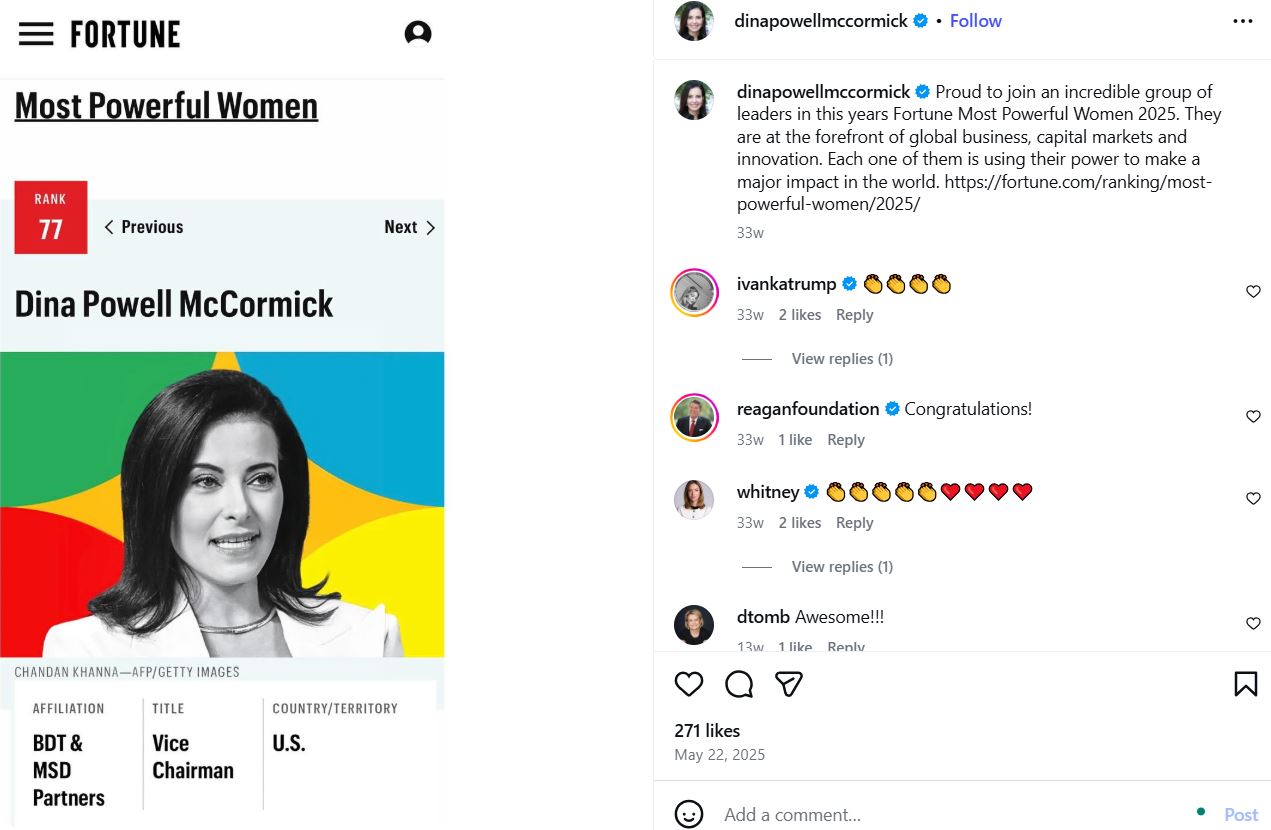 - Dina Powell and her second husband, Dave McCormick, have co-authored a book titled “Who Believed in You: How Purposeful Mentorship Changes the World,” focused on the power of mentorship and drawing on their own experiences and interviews with leaders.