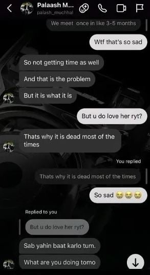 Famous forLeaked chats with Palash Muchhal before his wedding in 2025