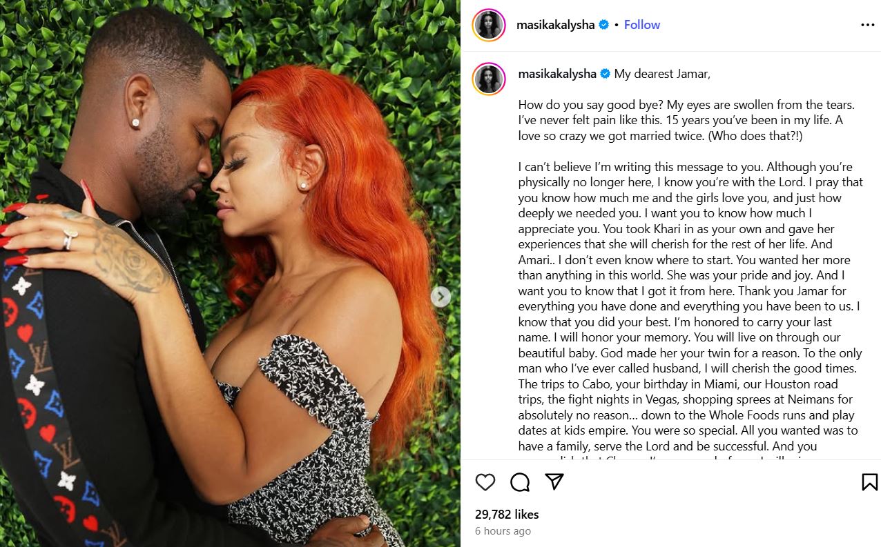 - After the death of Jamar Champ, Masika shared a post on Instagram saying they had married twice.