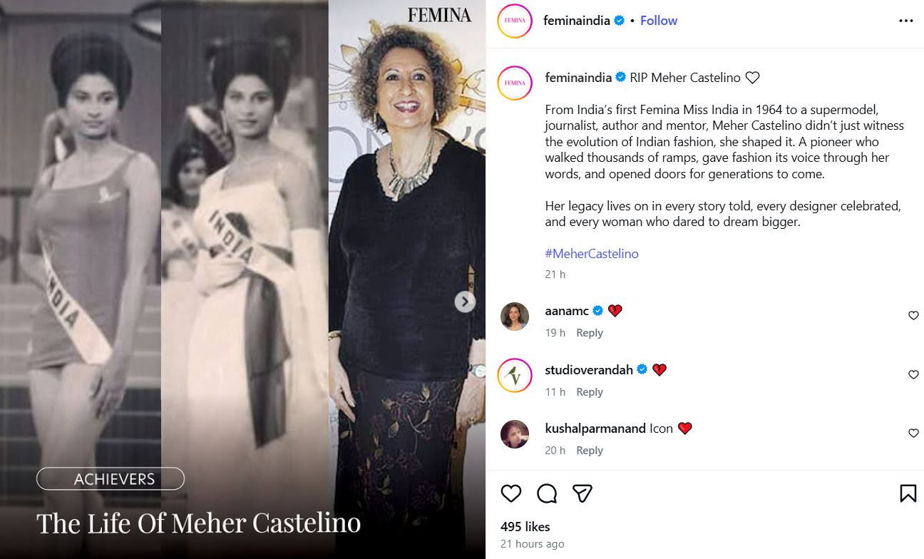 - Castelino’s work appeared in nearly 130 national and international newspapers and magazines, which made her a prominent voice in fashion commentary and lifestyle reporting.