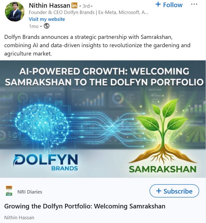 - In January 2024, Nithin established Dolfyn Brands in Bengaluru and began serving as its CTO. The company partners with founders to build and scale digital-first consumer brands using technology.