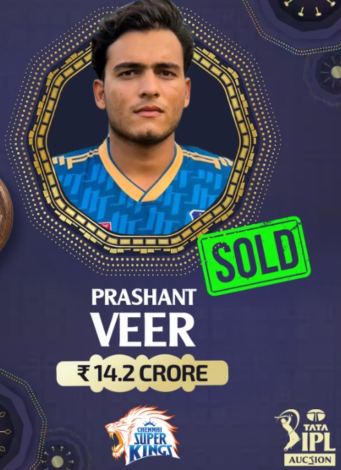 Reportedly, bidding for Prashant Veer was very competitive; however, Chennai Super Kings beat Sunrisers Hyderabad, who bid up to Rs. 14 crore for him.