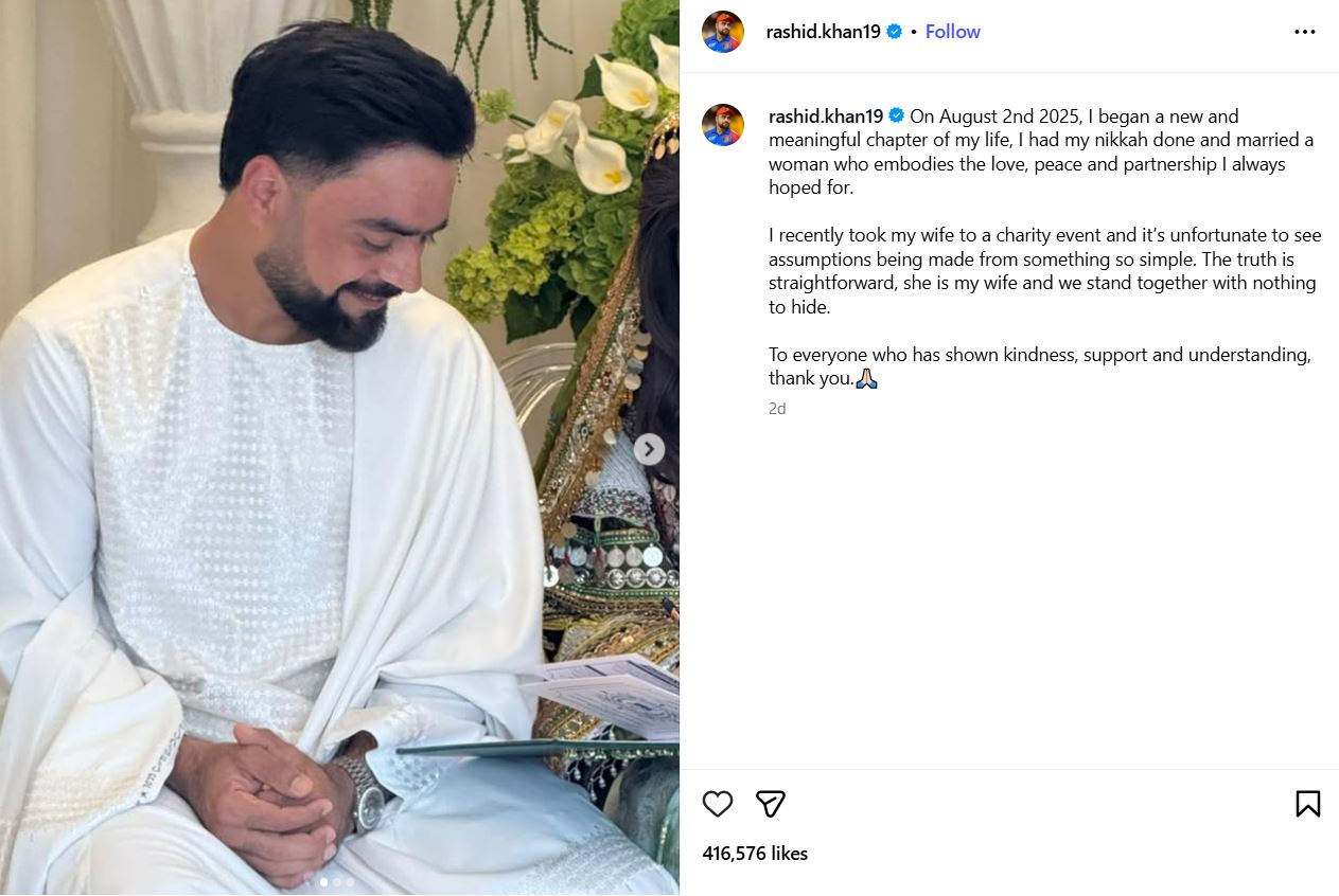 - On 2 August 2025, just 10 months after his first wedding, Rashid Khan formalised his second marriage through nikkah with another woman.