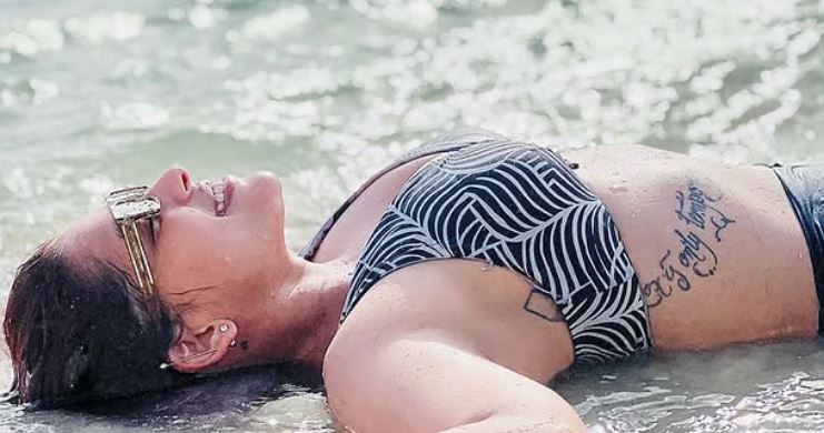 | Tattoo(s) | • On the both wrist: A sun and a crescent moon![]() • On the right ankle: A butterfly ![]() • On the left forearm: A temple shape structure ![]() • On the left ribs: Phrase "The box is only temporary!" ![]() |