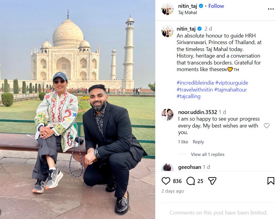An Instagram post shared by Sirivannavari’s guide during her visit to the Taj Mahal