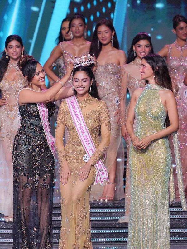 Sree Advaita G being crowned as Femina Miss India 2026 2nd Runner-up at KIIT Bhubaneswar 61st Femina Miss India