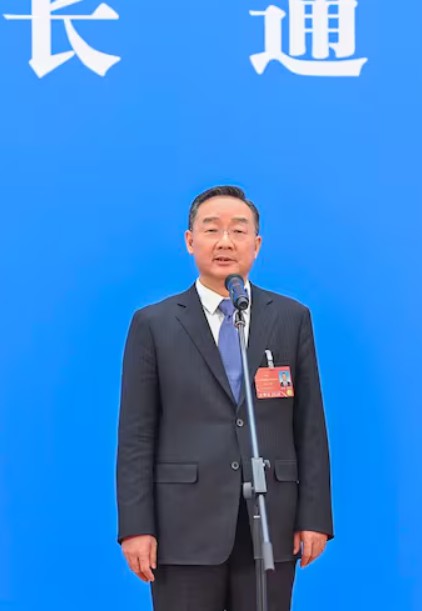 Tang Renjian while speaking to the media after the opening meeting of the second session of the 14th NPC at the Great Hall of the People in Beijing, China, on 5 March 2024