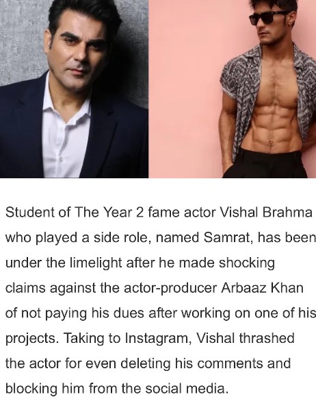 A snip from a news media article in which Vishal Brahma blamed Arbaaz Khan’s film production team for not paying him his dues
