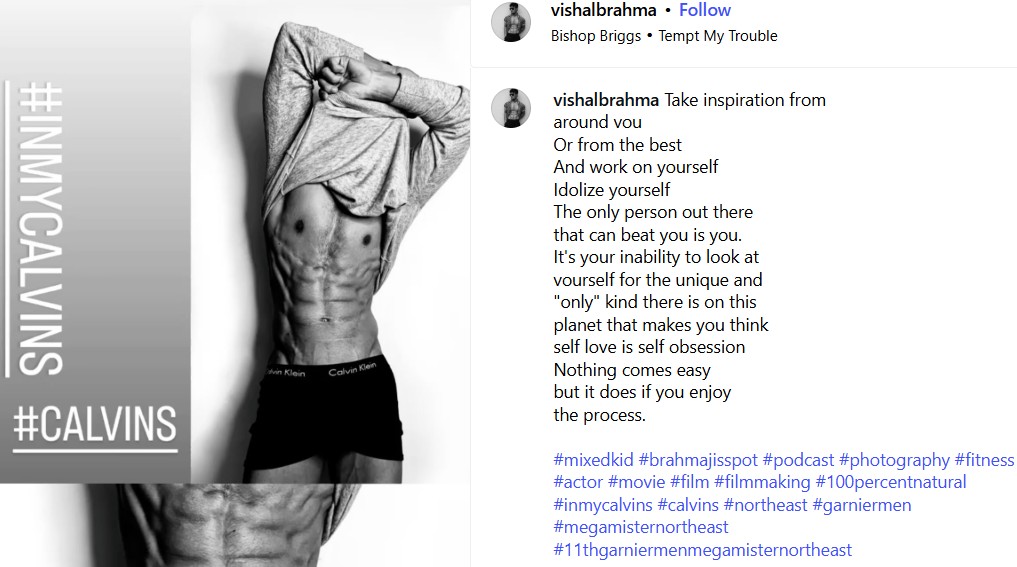 A snippet from Vishal Brahma’s social media post, where he was promoting a clothing brand