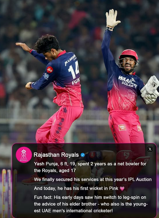 • Rajasthan Royals purchased Punja at the base price of 30 lakh in the auction of the IPL 2026 and awarded him a full contract.